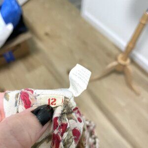Good preowned condition - see photos for a few small spots at neck. Hardly noticeable with the busy print. Tons of life left.