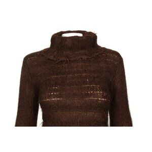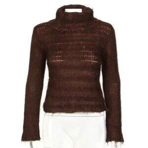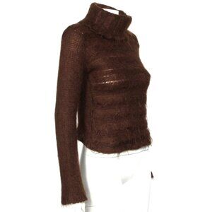 Vintage ANTOINE Brown Cable Knit Mohair Blend Turtleneck Crop Sweater XS/584