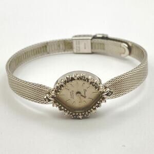 Vintage ARMITRON DEAUVILLE 20 Diamonds Quartz Ladies Watch Silver Tone Broken