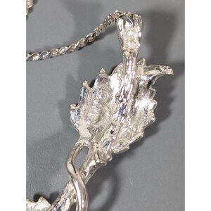 This vintage Arthur Pepper necklace features a timeless double leaf design in a striking silver tone, perfect for adding a touch of elegance to any outfit. A classic piece for vintage jewelry collectors and fashion enthusiasts alike.