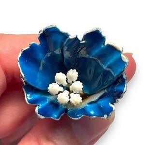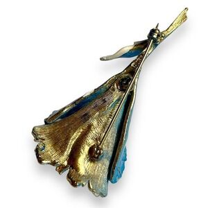 Featuring a gold tone finish and striking blue and white enamel accents, this brooch is the perfect statement piece for any fashion-forward individual.