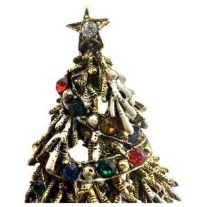 Vintage ART Christmas Tree Brooch Pin gold Tone With Rhinestones Arthur Pepper