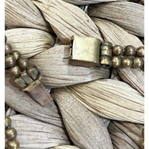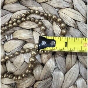 This vintage Art Deco brass bead double graduated necklace with a filigree clasp is a stunning piece from the 1930s. The necklace features a beautiful gold color with a push lock closure and measures 13 inches and 14 inches in length. Handmade with a nickel-free, stackable design, this necklace is perfect for women looking to add a touch of retro charm to their outfit. The Art Deco style and Victorian goth theme make it a unique and original piece for any jewelry collection.