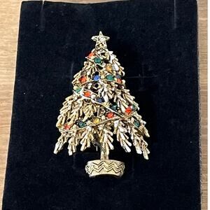 Vintage ART Signed Christmas Tree Brooch Pin Rhinestone Holiday Collectible