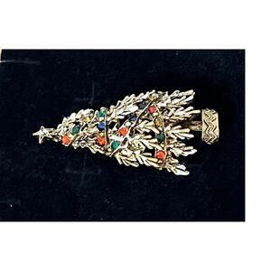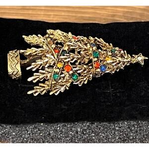 Add sparkle to your holiday jewelry collection with this beautiful vintage signed ART Christmas Tree brooch. Featuring a gold-tone metal tree accented with colorful rhinestone “ornaments”, this festive pin captures the magic of the season. ART was a mid-century jewelry maker known for high-quality costume pieces, and their Christmas designs are especially collectible.