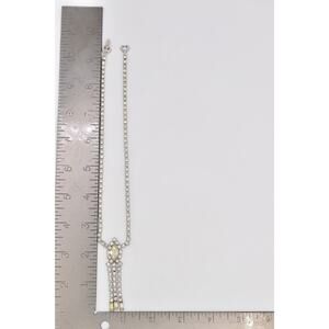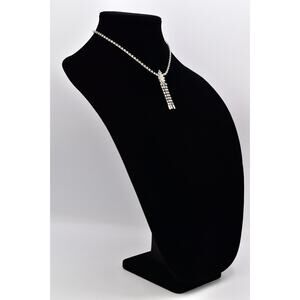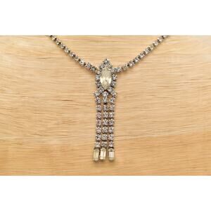 Vintage ASTRA Rhinestone Necklace Marquise Center Tassel Drop Silver Tone BinBQ