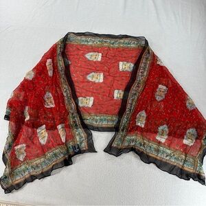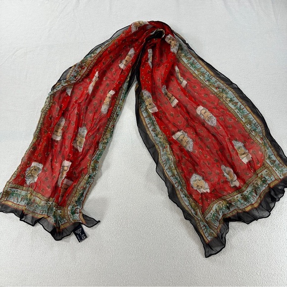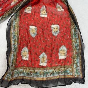Vintage ATG All That Glitters Elegant Red/Black Santa Claus Women's Scarf 57”L