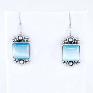 Vintage ATI Mexico Sterling Silver 925 Blue Cat’s Eye Drop Earrings