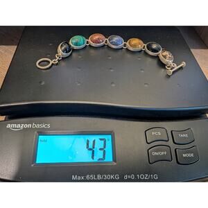 Vintage ATI Mexico Sterling Silver Multi-Gemstone Cabochon Link Bracelet