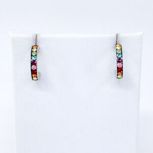Vintage ATI Taiwan Sterling Silver 925 Rainbow CZ Hoop Earrings