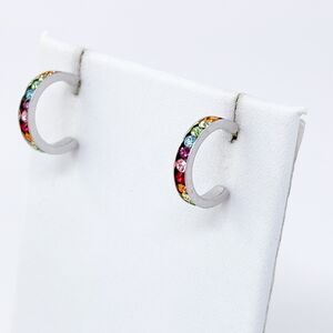 Title: Vintage ATI Taiwan Sterling Silver 925 Rainbow CZ Hoop Earrings