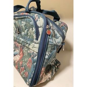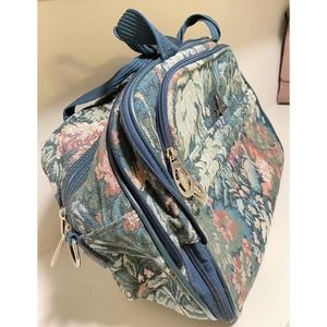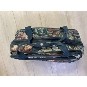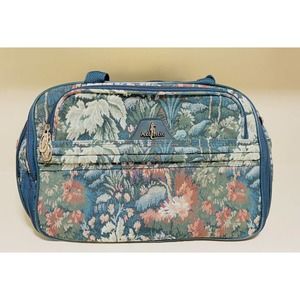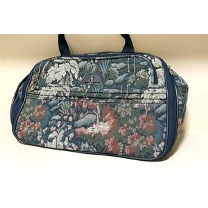 Vintage ATLANTIC Tapestry Travel Green Foral Zip Closure Tote Bag Shoulder Strap