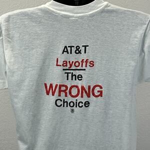 Vintage AT&T Layoffs T Shirt Mens S Small White 80s Ron Allen CWA ATT Telephone