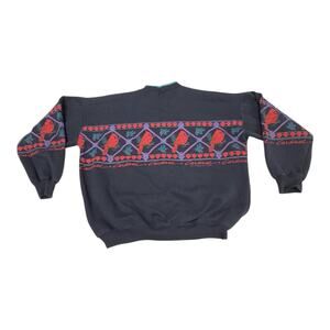 Vintage AU Sportswear Black XL Cardinal Geometric Motif Collared Sweatshirt