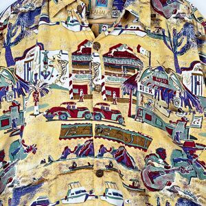 Vintage AVI Collection Kahala Hawaiian Shirt Large Yellow Baja Mexico Tacos Beer