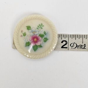 Vintage AVON 1984 SPRING BOUQUET Porcelain Round Disc Brooch Pin Floral Design