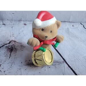 Vintage AVON Flocked Teddy Bear Drummer Christmas Ornament Missing Hanger