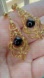 Vintage AVON earrings feature an art nouveau gold tone design with a striking black lucite accent.