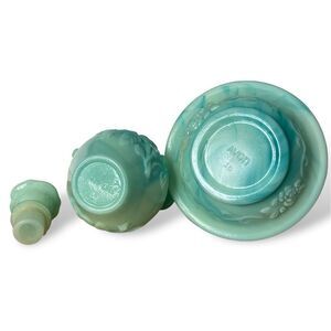 Vintage AVON Moonwind Mini Repro Jadeite Slag Glass Bath Pitcher Stopper Bowl