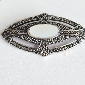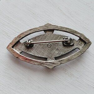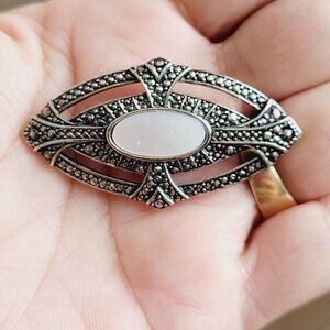 Vintage AVON Mother Of Pearl Oval Brooch Antiqued Silver Tone 2" Elegant EUC2"x1"