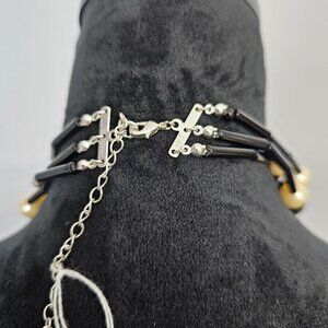 Vintage AVON NRT 3 Strand Retro Faux Turquoise & Pearl Black Bead Necklace