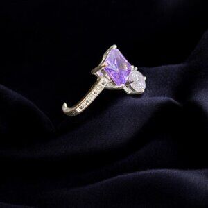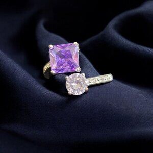 Vintage AVON NVC Silvertone Amethyst Gemstone Rhinestone Ring Size 7.5 Adjustabl