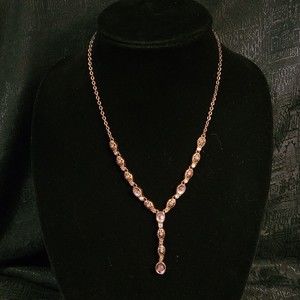 Vintage AVON Pink Glass Crystal & Cabochon Y Drop Necklace