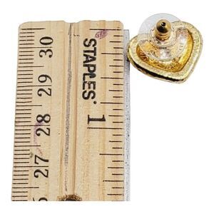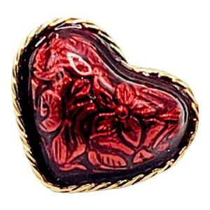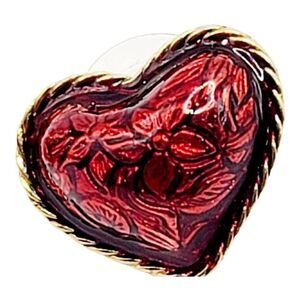 Vintage AVON Red Heart Earrings With Gold Tone Trim and Floral Design.