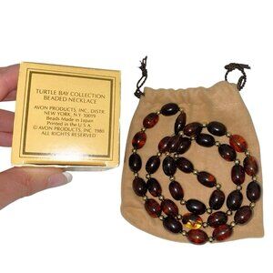 Vintage AVON Turtle Bay Collection Beaded Tortoise Look Necklace In Original Box