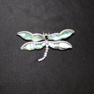 Vintage Abalone Dragonfly Brooch w/Rhinestones