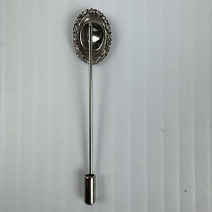 This vintage stickpin features a beautiful abalone shell design in a silver tone setting.