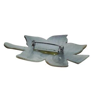 This brooch showcases the natural beauty of abalone shell, offering an iridescent flower-shaped design. Its secure pin clasp ensures reliable wearability.