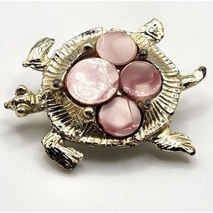 Vintage Abalone Shell White Gold Tone Brooch Pin 1.25in | Materials: gold metal alloy, pink shell | Length: 1.25in | Clasp: brooch pin | Signed? no | Excellent vintage condition