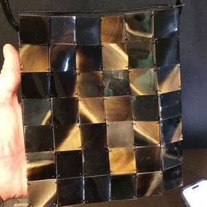Vintage Abalone shell purse by Shiraleah has snags on back front is perfect