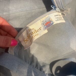Soft powder blue genuine suede skirt by Abe Schrader, likely from the 1970s–80s based on the ILGWU union label. Flattering A-line cut, high waist, and classic mid-length. Fully lined with side zip + clasp closure. A beautiful, rare pastel piece perfect for a capsule wardrobe or vintage collection.