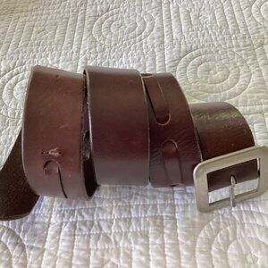 Vintage Brown Leather Belt With Silver-Tone Square Buckle & Adjustable Loops
