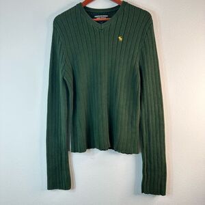 Vintage Abercrombie & Fitch Green Ribbed Knit Sweater Womens Medium Heavyweight