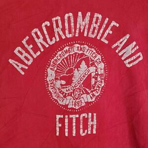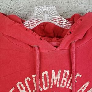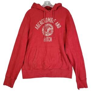 Vintage Abercrombie & Fitch Men’s Hoodie Red Embroidered Sweatshirt Size L Y2K