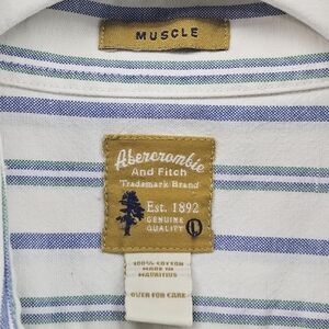 Vintage Abercrombie Men's Cotton Button-Down Green and Blue Stripe Size Lg