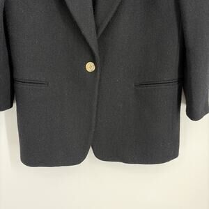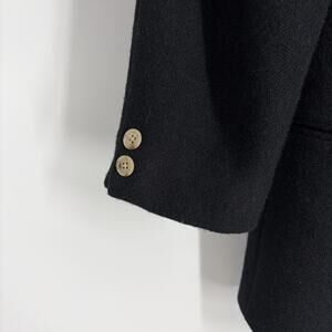 This vintage Abercrombie and Fitch wool blazer coat in women's size 8 is a classic piece perfect for a preppy casual look. Made with a solid black tweed wool outer shell and featuring a mid-length, long sleeve design with a button closure, this blazer is both stylish and versatile. The collared blazer is suitable for all seasons and is accented with buttons, adding a touch of vintage charm. Ideal for a variety of occasions, this Japan-made blazer embodies a timeless, preppy aesthetic. Pit to pit: 20 in Shoulder to hem: 30 in Pit to cuff: 14.5 in Shoulder to shoulder: 17 in
