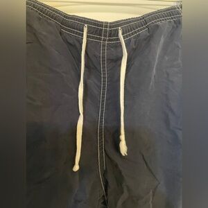 Bought in 1997 at Abercrombie. Probably a 4-5 inch inseam board short. There’s a small (bleach) stain on the back. Elastic waist with drawstring. Haven’t worn in many many years. Still in great condition.