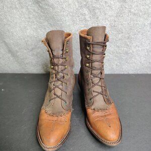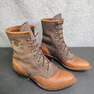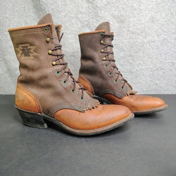 Vintage Abilene Boots Brown Leather Kiltie Packer Embroidered Aztec Size 5.5