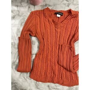 Vintage Absolutely Creative Worldwide 100% COTTON V-Neck Orange Knit Sweater M