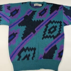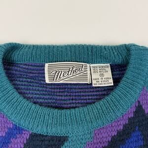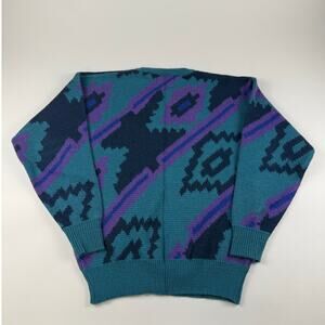 Vintage Abstract Blue Purple Retro 80s Acrylic Wool Blend Sweater Size Medium