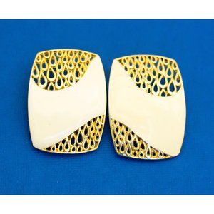 Vintage Clip On Earrings, Gold Tone Earrings, Geometric Earrings, Abstract Earrings, Teardrop Pattern Earrings, Made by Don-Lin