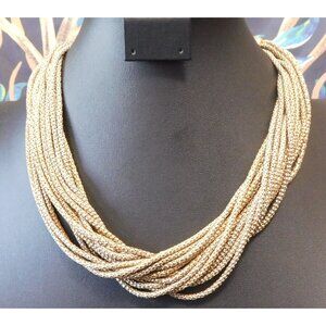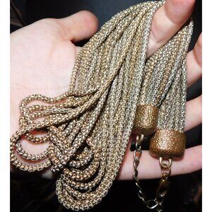 Add a touch of elegance to any outfit with this vintage abstract gold tone layered chain necklace. Perfect for casual or formal occasions, it features intricate design elements that capture attention.