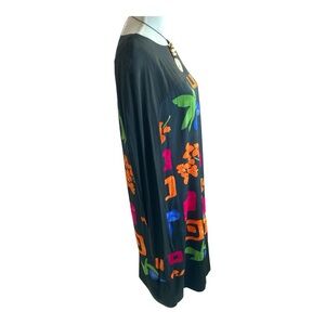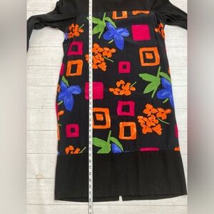1980’s…bold,bright and colorful abstract print features florals and geometric shapes.