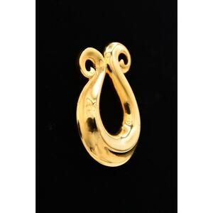 Vintage Abstract Pin Brooch Gold Tone Shiny Metal Harp Heavy Chunky 1990s BinAT