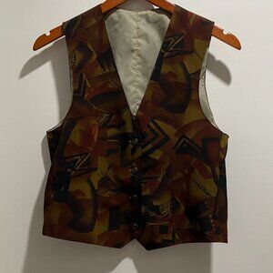The Vintage Abstract Print Earthy Brown/Black Fitted Scandi Girl Boho Whimsigoth Y2K Vest Top in size S is a stylish and unique piece perfect for various occasions such as parties, casual outings, or business events. Made of lightweight polyester, this geometric patterned vest features a button closure, slim fit, and collarless design. The earthy brown color and whimsical accents add a touch of nature-inspired charm, making it a versatile addition to any wardrobe. Perfect for the fall and spring seasons, this vest is ideal for those looking to add a creative and artistic flair to their look. Very good condition. Measurements: pit to pit 17" and length 20". Check my other listings.