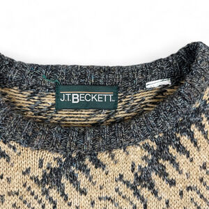 Vintage Abstract Sweater Adult MEDIUM Brown Blue Gray 90s JT Beckett Cozy Tiled